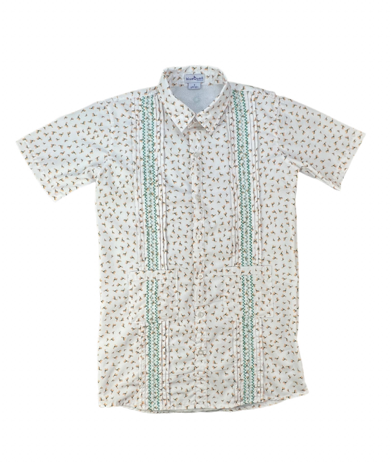 White Guayabera Short Sleeve Button Front Dress with Llama Print