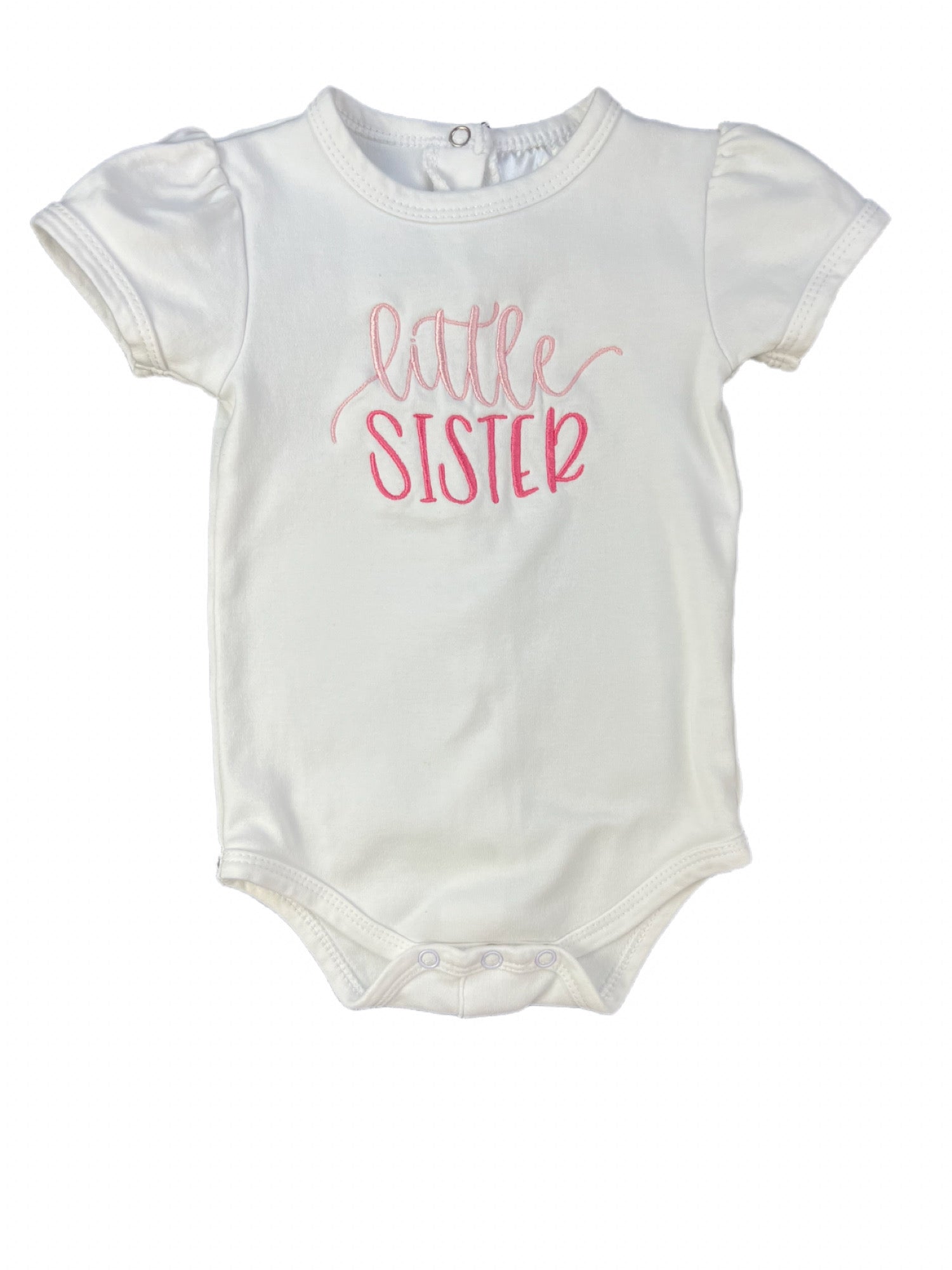 White Short Sleeve Pima Cotton "Little Sister" Embroidered Onesie