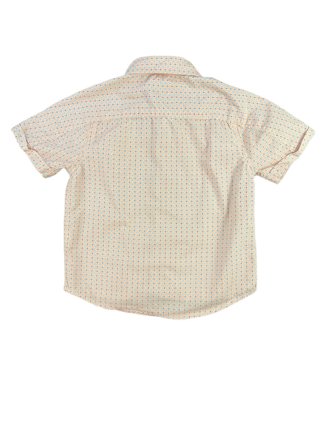 White Orange and Blue Print Short Sleeve Button Down Shirt