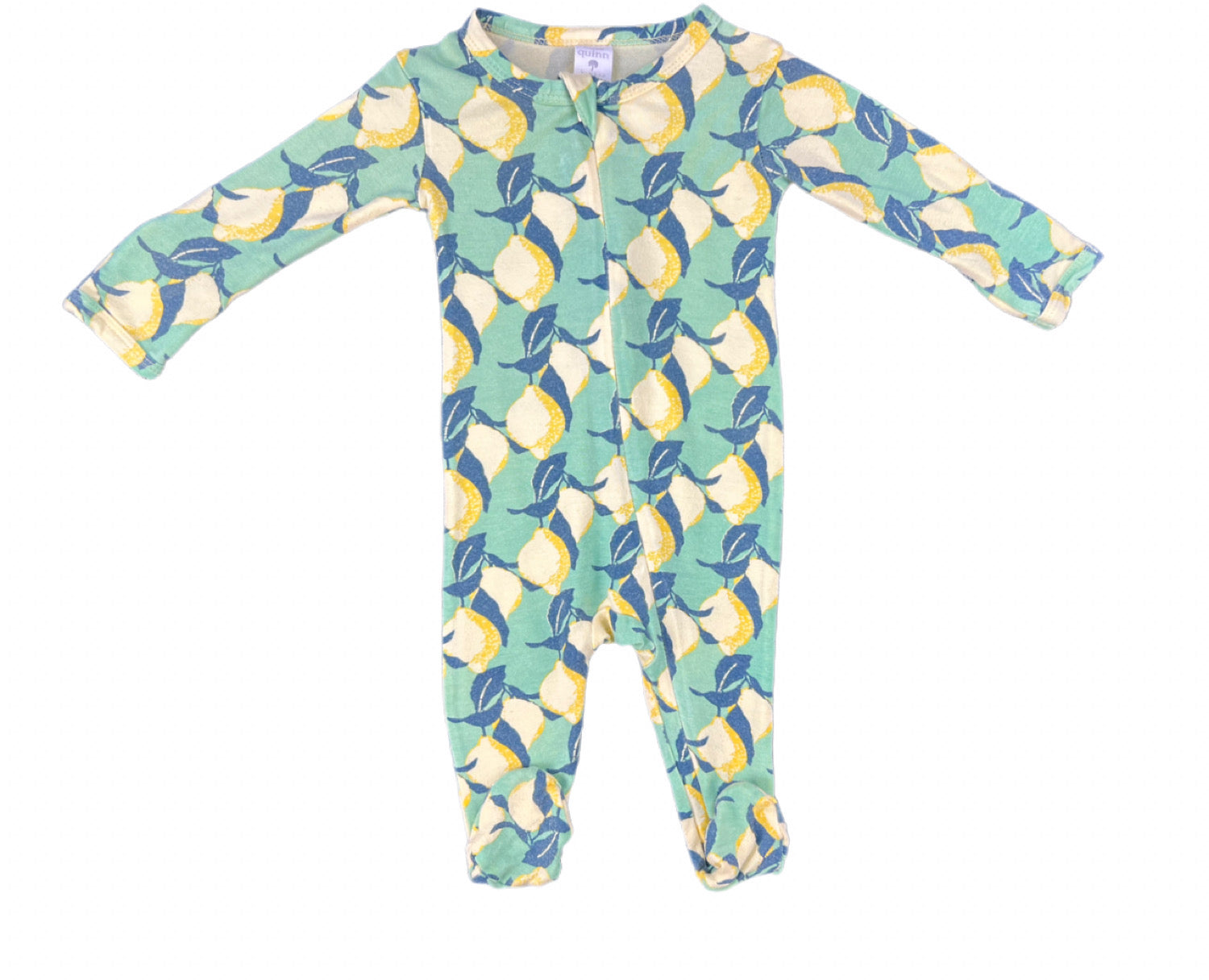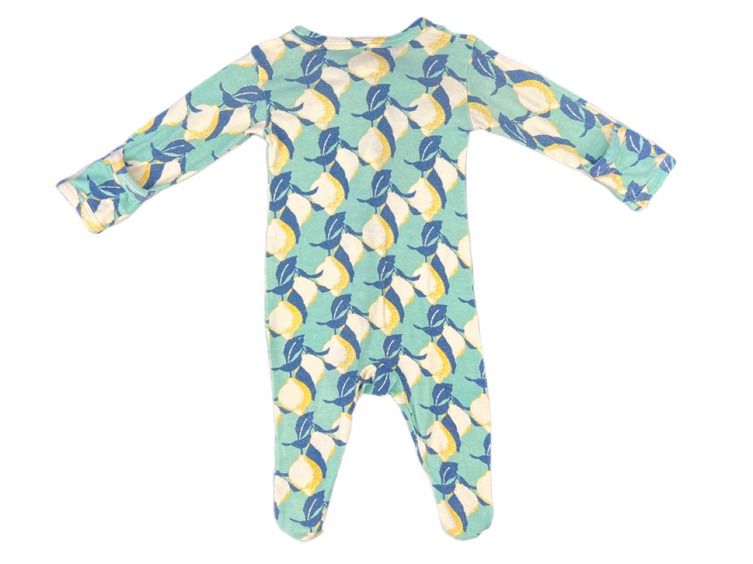 Green and Yellow Long Sleeve Bamboo Lemon Print Zip Footie