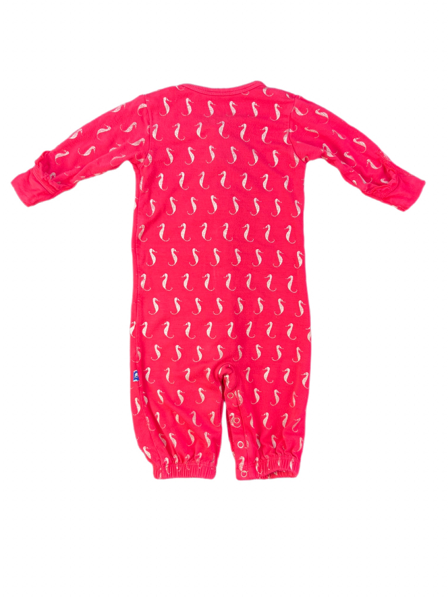 Hot Pink Long Sleeve Bamboo Convertible Gown/Romper with Silver Sea Horse Print