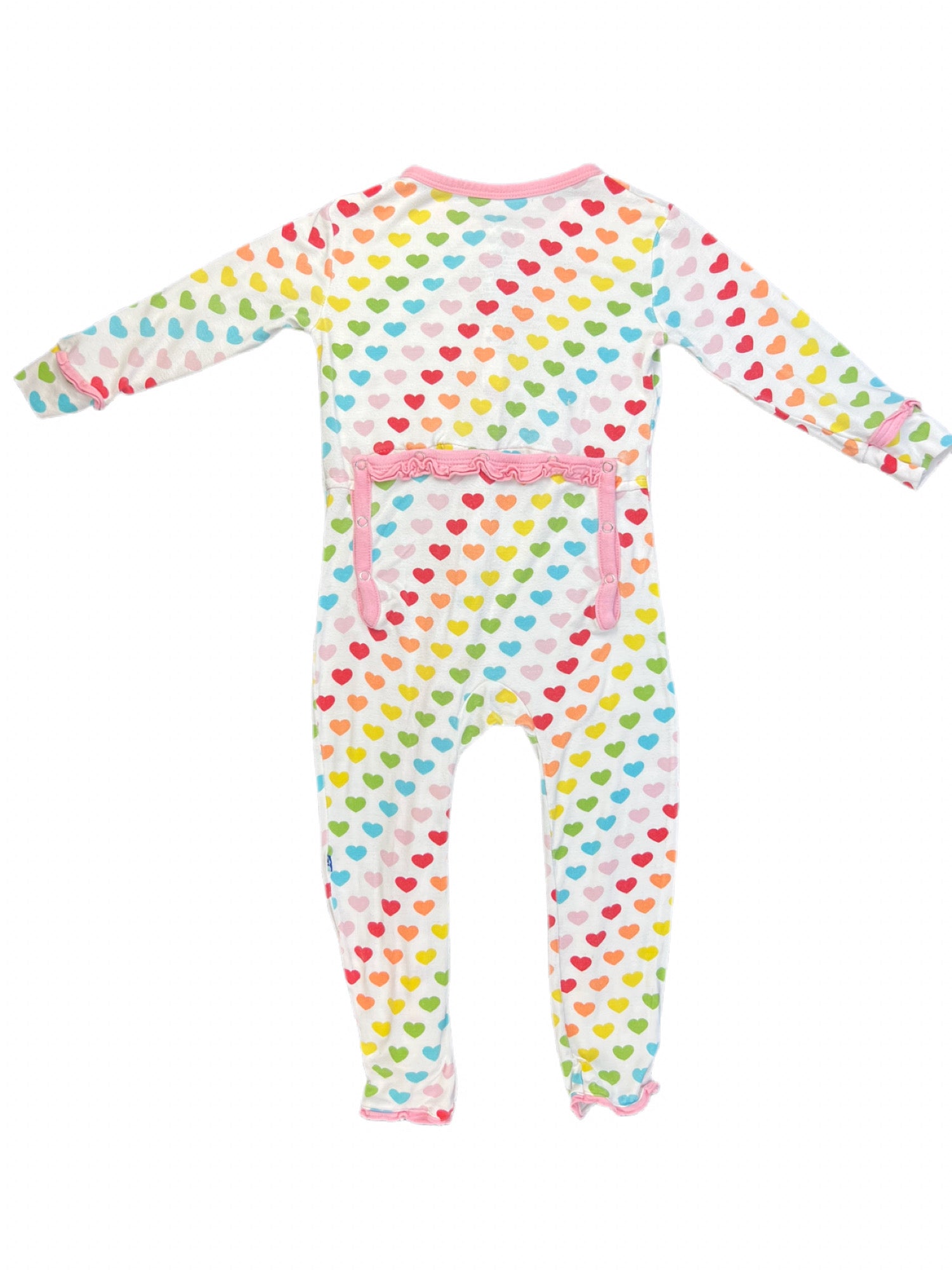 White Long Sleeve Bamboo Sleeper with Rainbow Hearts Print