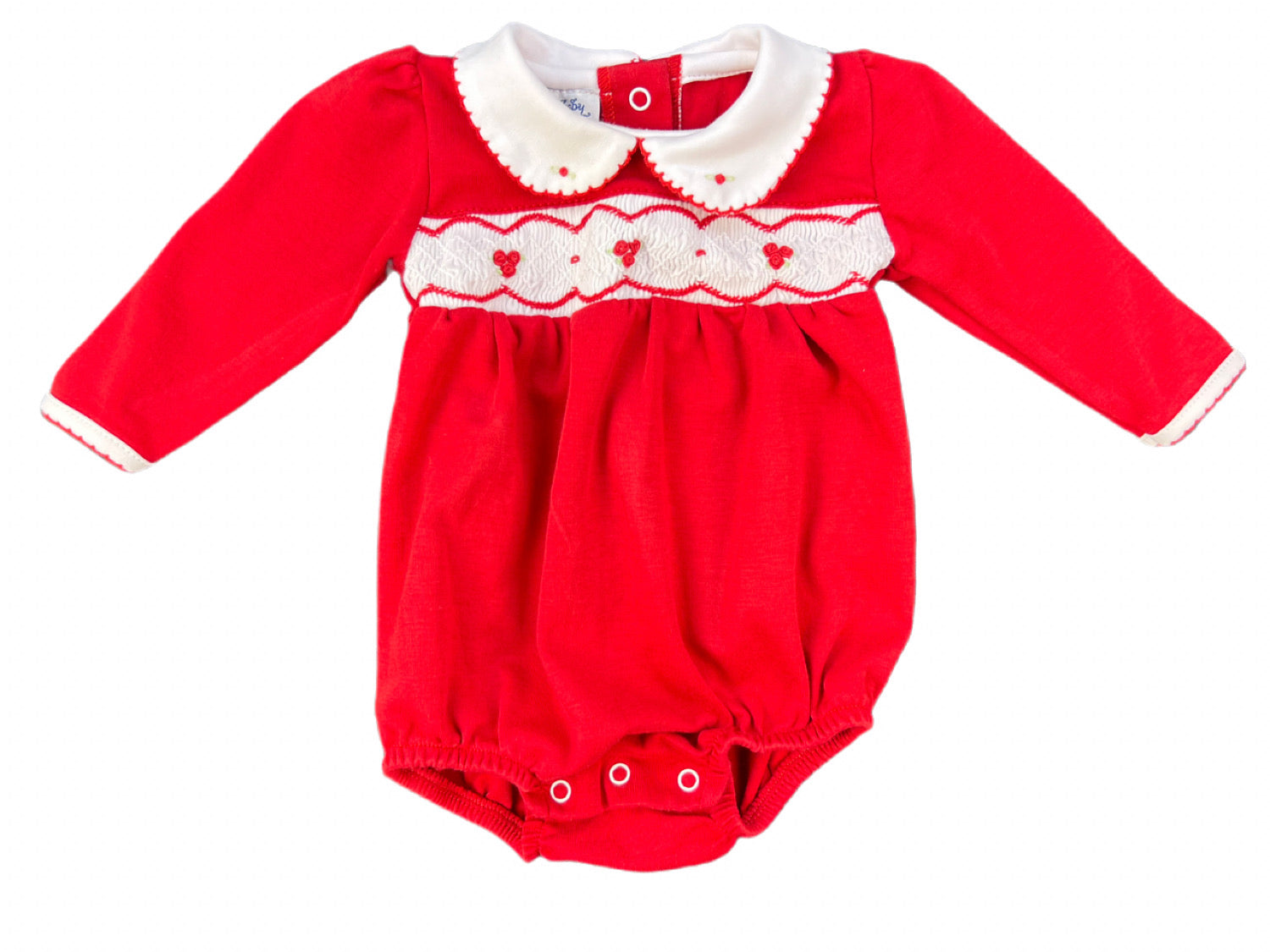 Clara and Colton Smocked Collared Pima Long Sleeve Girl Bubble