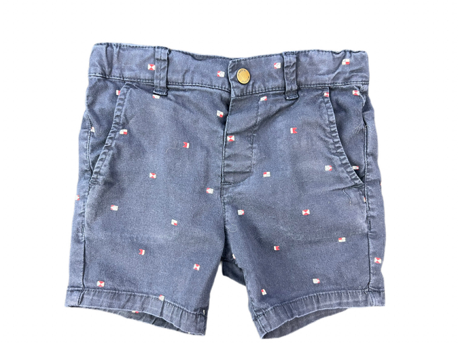 Navy Adjustable Waist Shorts with Red White and Blue Print