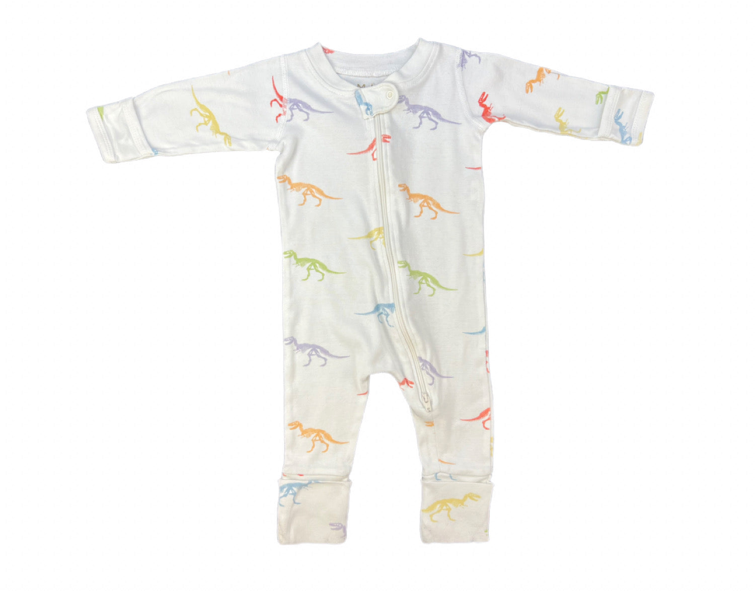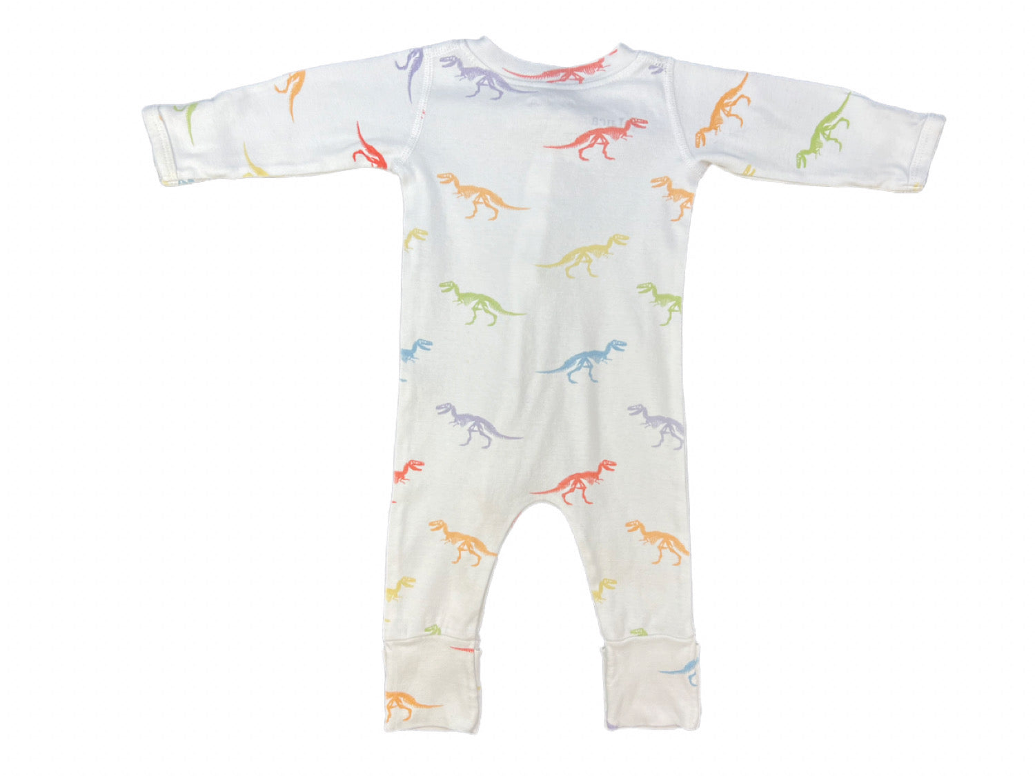 White Long Sleeve Cotton Sleeper with Multicolor Dinosaur Print