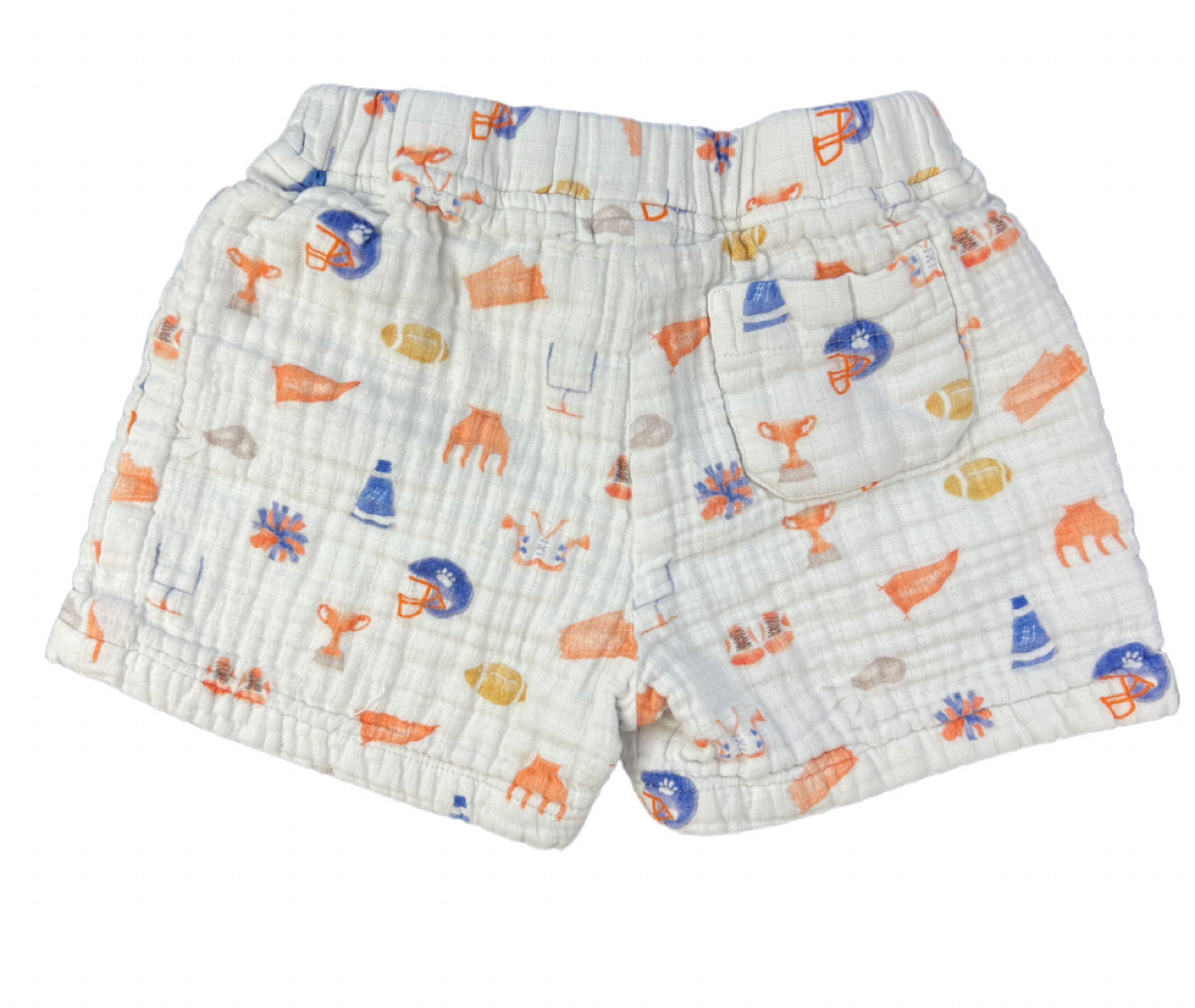 White Organic Muslin Football Print Shorts