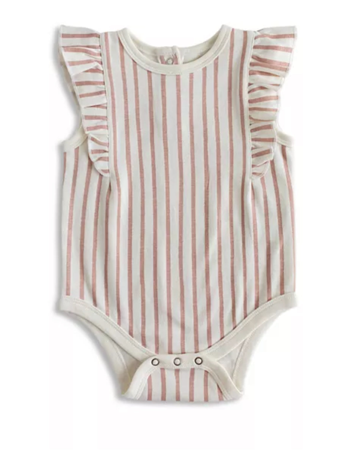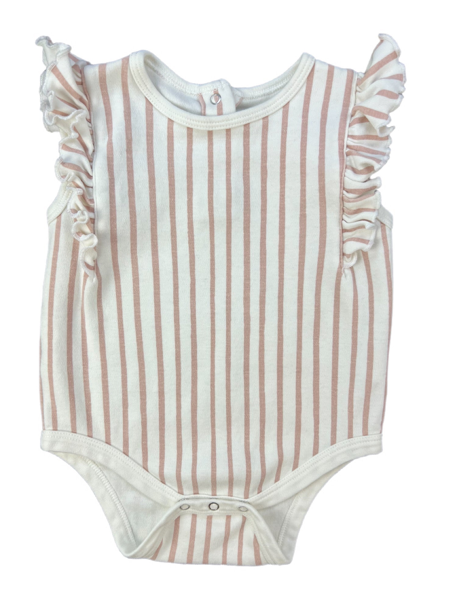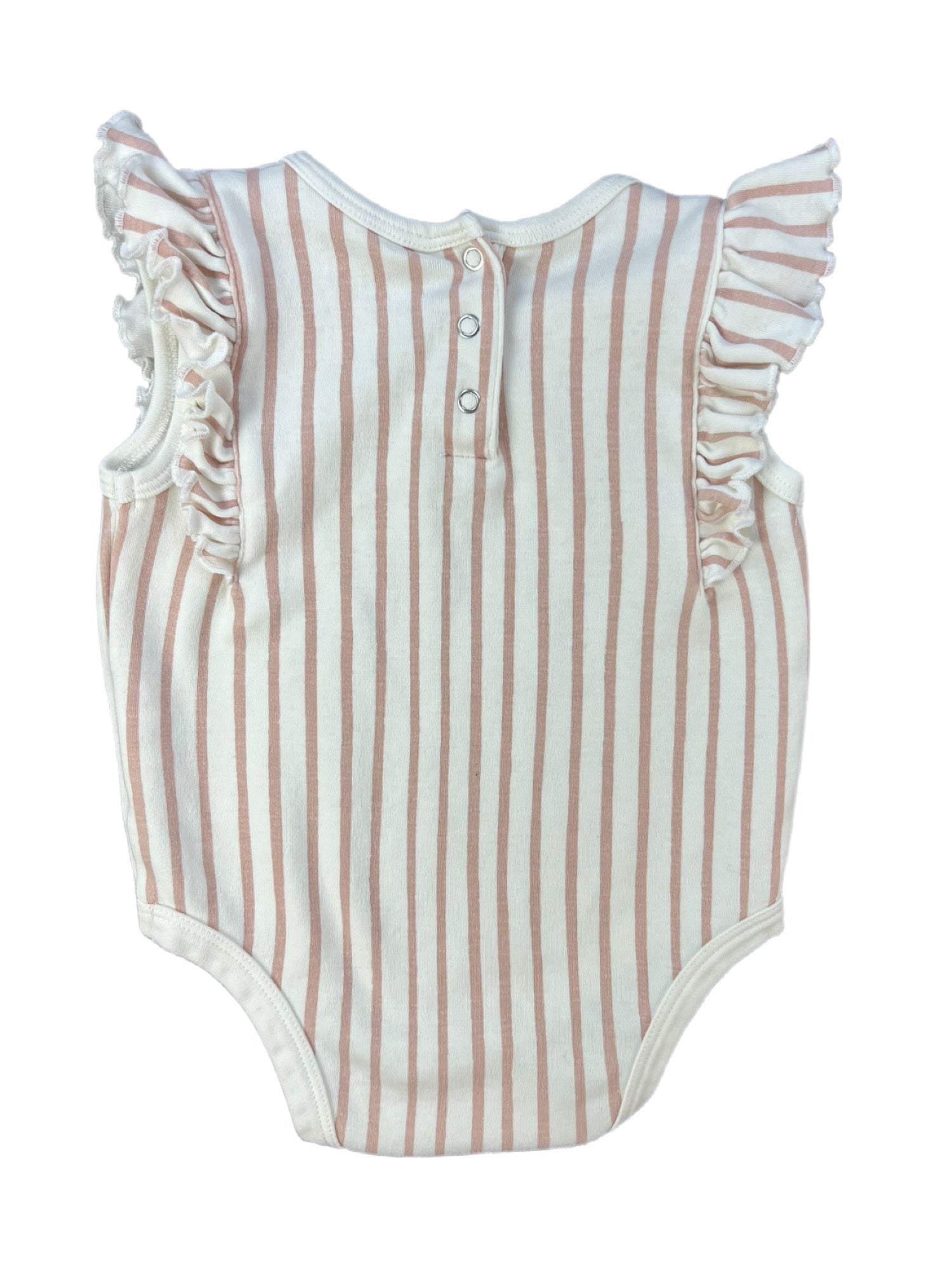 White Sleeveless Ruffle One Piece - Peony Stripe