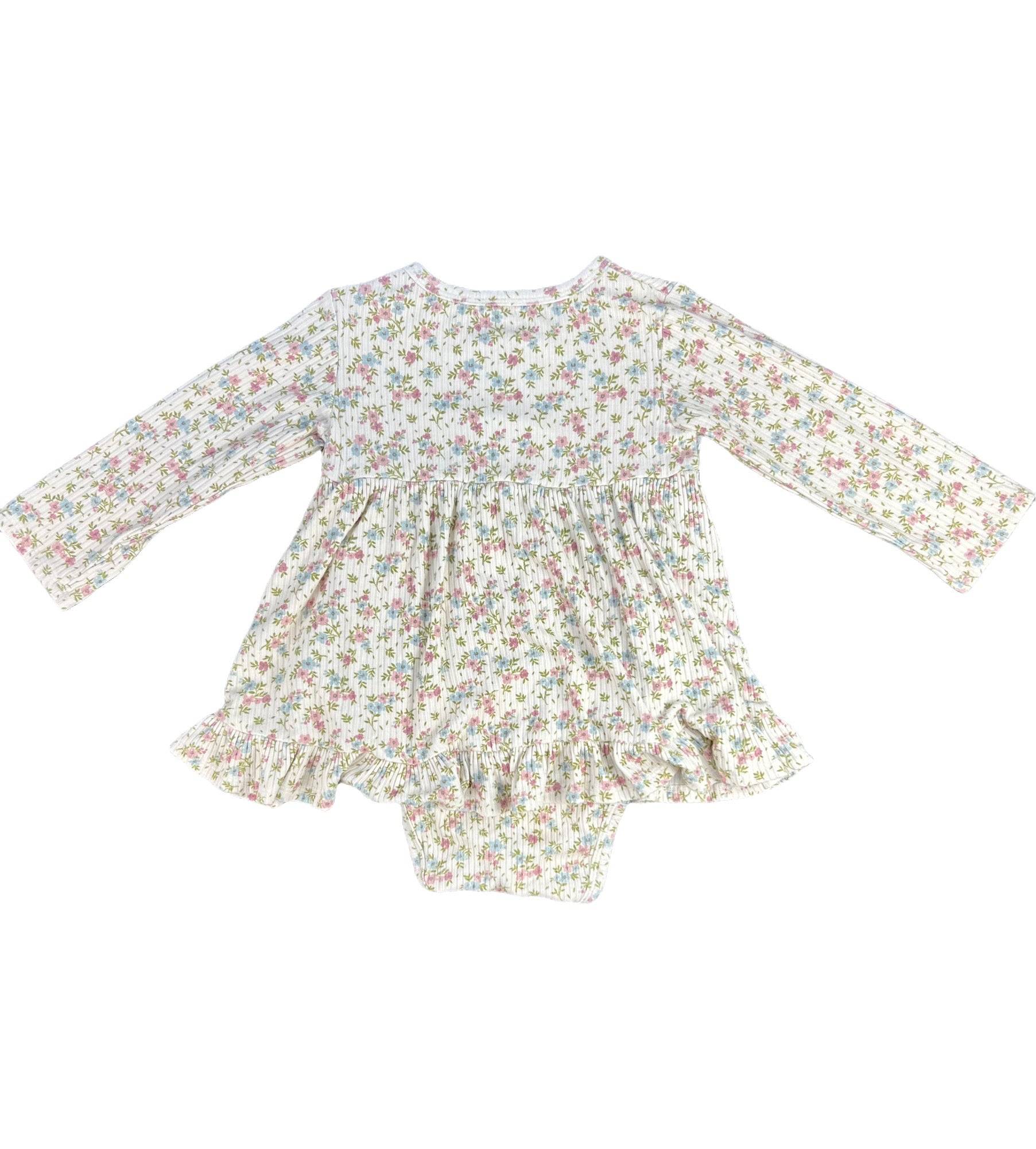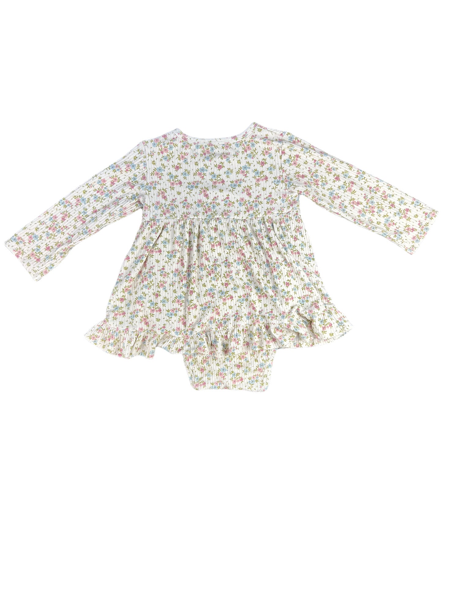 Long Sleeve Cream with Pink and Blue Floral Basic Twirl Skirt Bodysuit