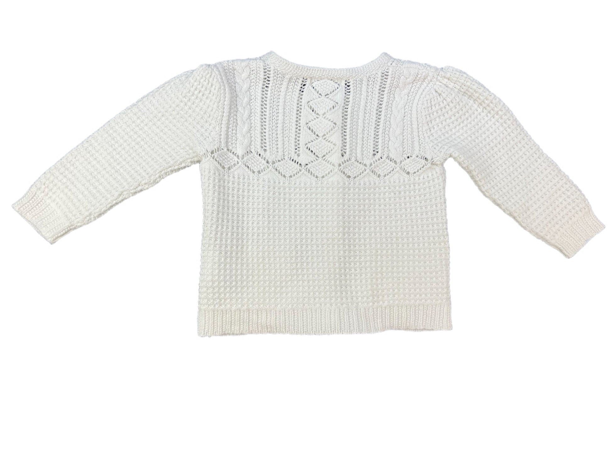 White Long Sleeve Button Front Sweater with Floral Needlepoint