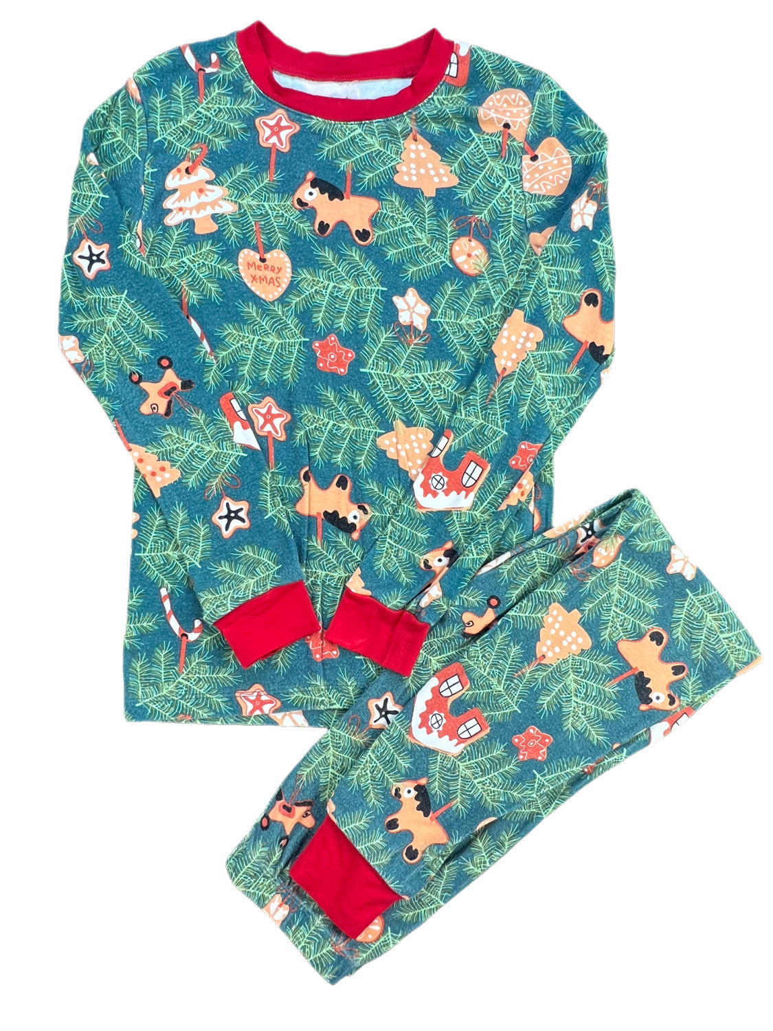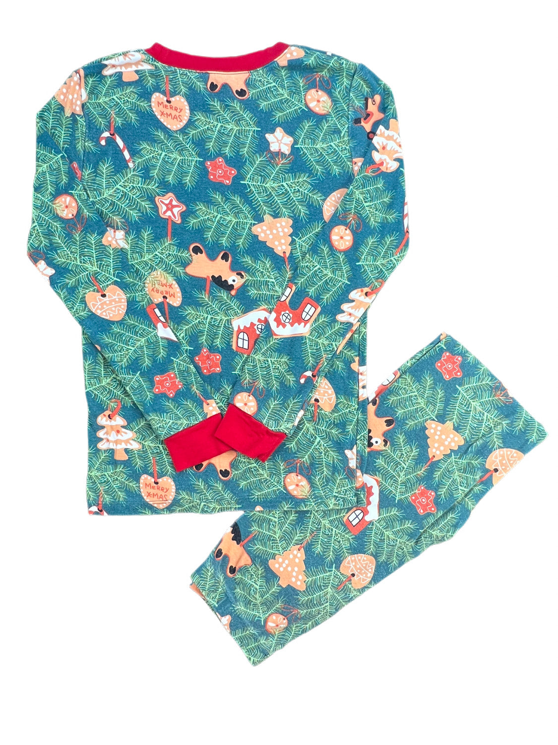 Green 2 Pc Bamboo Long Sleeve Christmas Ornamant Pajama Set