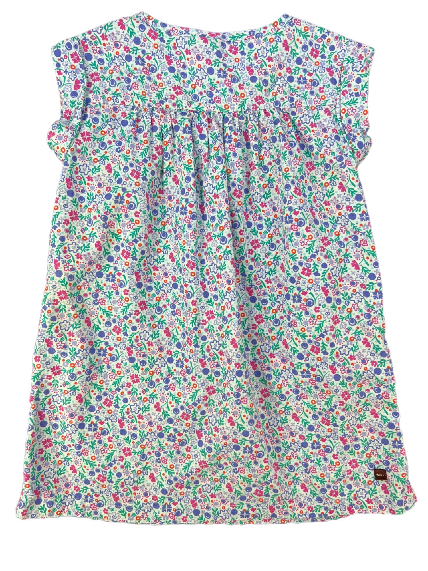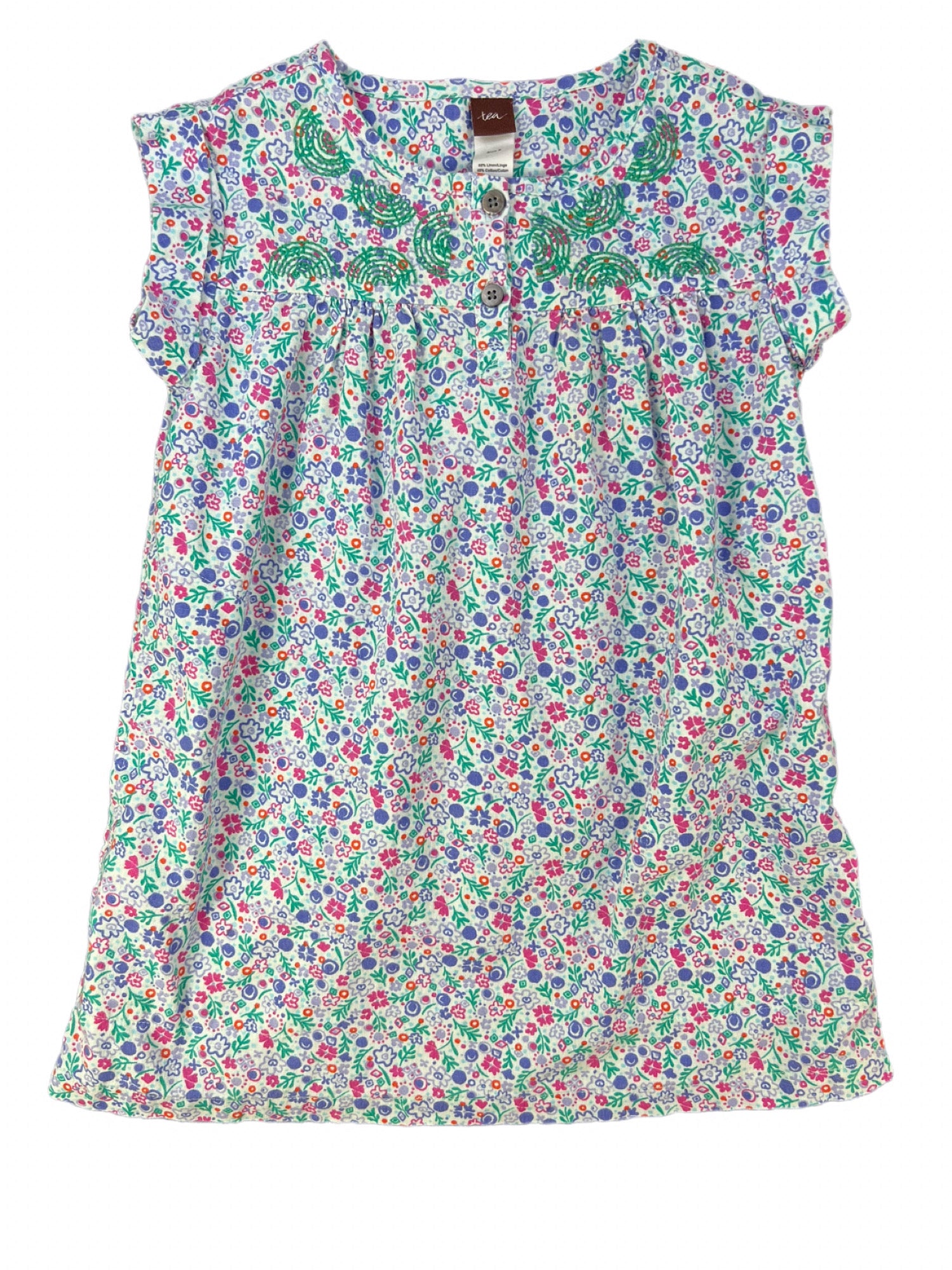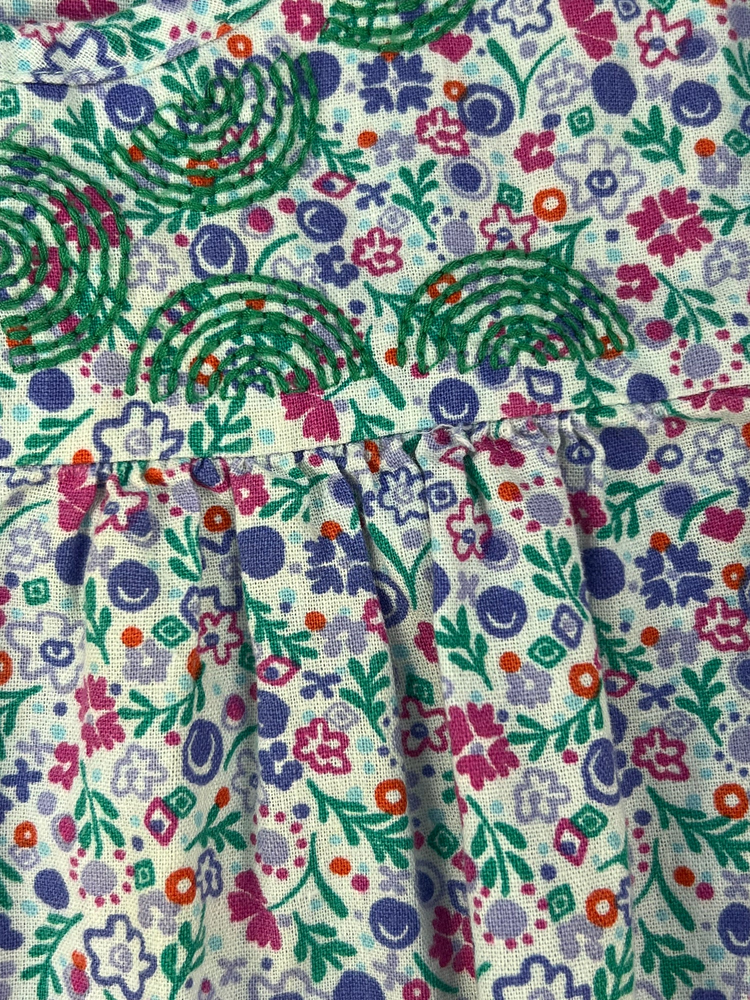 Linen/Cotton Cap Sleeve Floral Print Embroidered Dress