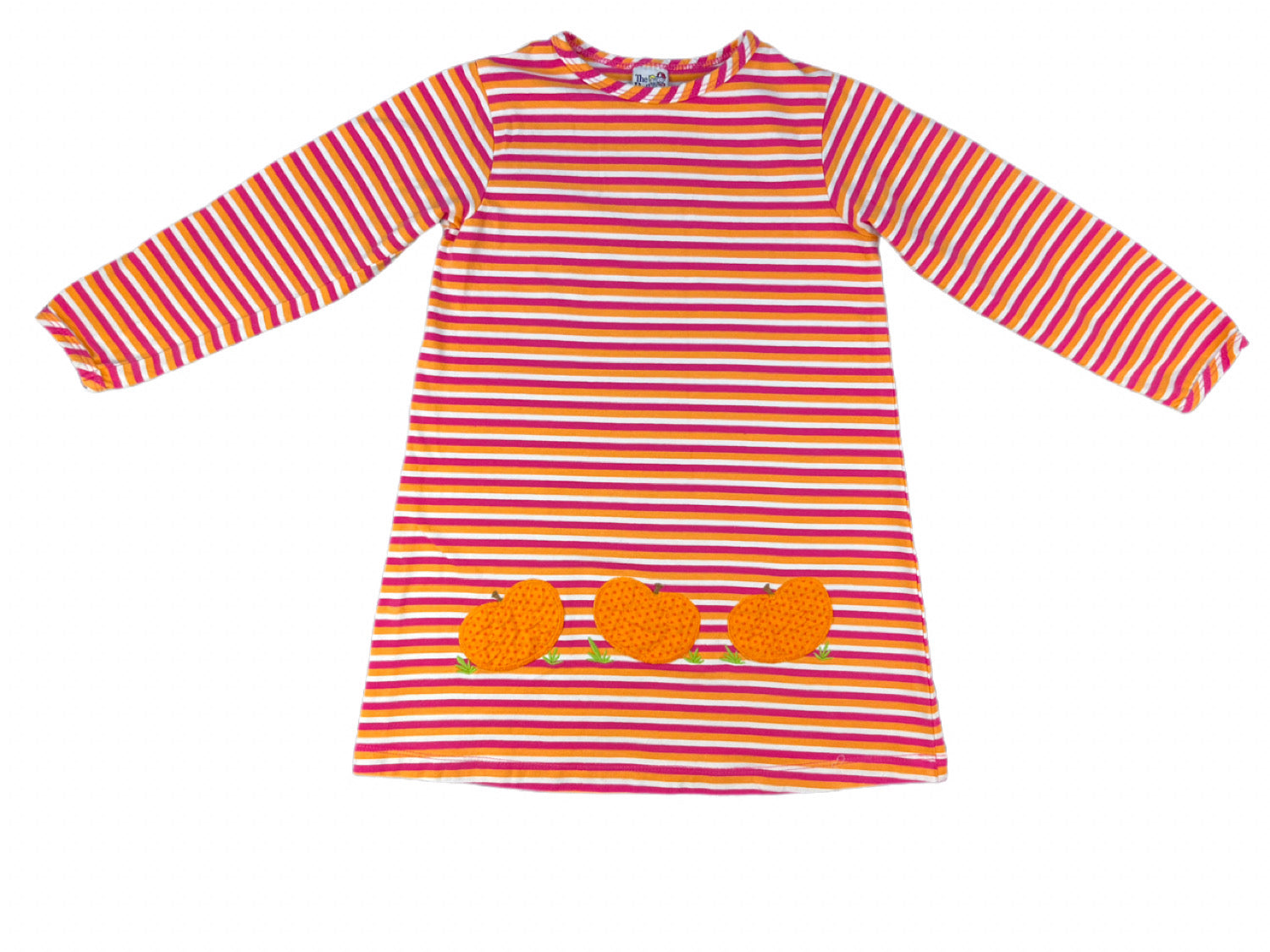 Pink Orange and White Stripe Long Sleeve Pumpkin Appliqué Dress